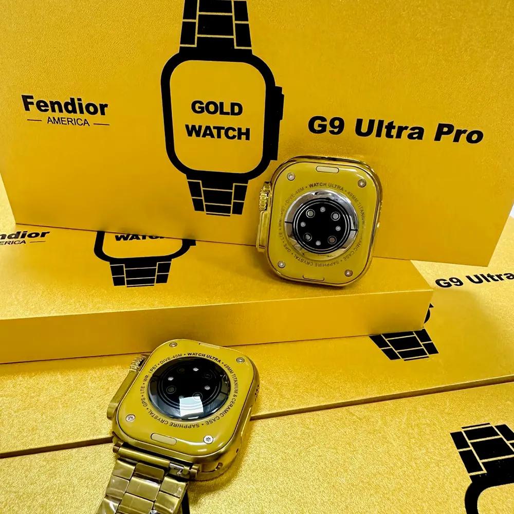 G9 Ultra Pro Gold Smart Watch with 3 Straps Men Ultra Series 9 NFC Bluetooth Call Watch for IOS & Android Phone